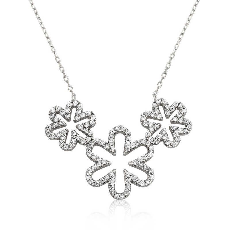 Gümüş Üçlü Papatya Bayan Kolye