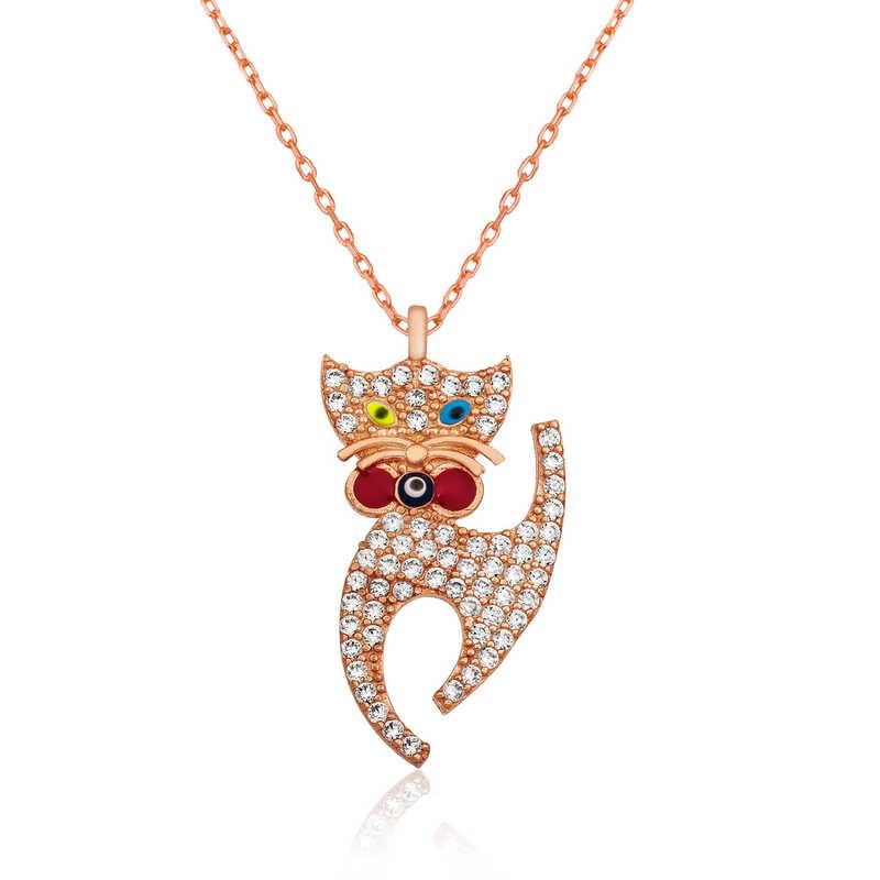Evlerimizin sevimli neşe kaynağı kediler, temiz olmalarının yanı sıra masumiyetin simgesidir. Asil ve mantıklı bir kişiliğe, mükemmel sezgilere ve akılcı bir duyarlılığa sahiptirler. Özel günlerin en tercih edilen hediye seçeneklerinden olan gümüş takılar, sevdiklerini mutlu etmek ve onlara her an yanlarında taşıyabilecekleri bir hediye vermek isteyenler için tasarlandı. Masumiyetin simgesi olan van kedisi figürlü gümüş kolyeyi kız kardeşinize, sevgilinize ya da arkadaşlarınıza armağan edebilirsiniz. Van kedisi bayan kolye 925 ayar gümüşten imal edilmiştir. Gümüş üzerine rose altın kaplama yapılmıştır. Rose altın kaplama yapılan gümüş bayan kolye modelleri parlaklığını uzun süre muhafaza eder ve oksitlenmesi gecikir. Gümüş olan zincir boyu ortalama 45 cm"dir. Gümüş van kedisi kolye modeli diğer tüm gümüş bayan kolye modellerinde olduğu gibi el emeği ile üretilmiştir. Gümüş ve değerli taşlar nedeniyle belirtilen ortalama ürün ağırlığında ± %10 sapma olabilmektedir.