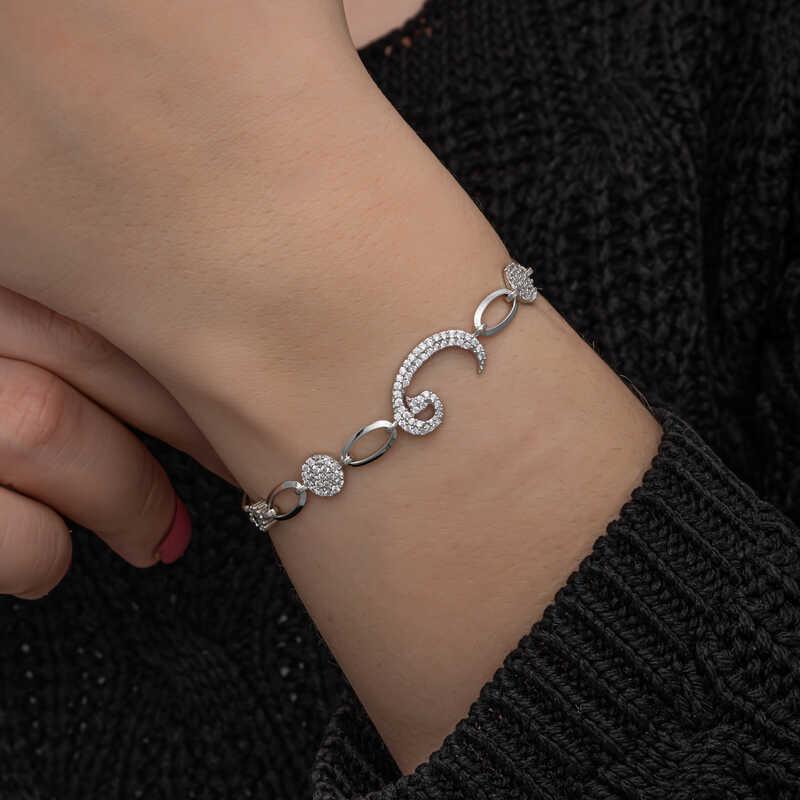Arap alfabesinin bir harfi olan vav anne karnındaki insan şeklini temsil eder. Gümüş zirkon taşlarla süslenmiş vav bileklik 925 ayar gümüşten imal edilmiştir. Gümüş üzerine rodyum kaplama yapılmıştır. Rodyum kaplama yapılan gümüş kadın bileklik modelleri parlaklığını uzun süre korur. Severek kullanabileceğiniz ve sevdiklerinize hediye edebileceğiniz bu tasarım kadın vav bileklik el emeği ile üretilmiştir. Gümüş ve değerli taşlar nedeniyle beliretilen ortalama ürün ağırlığında ± %10 sapma olabilmektedir.