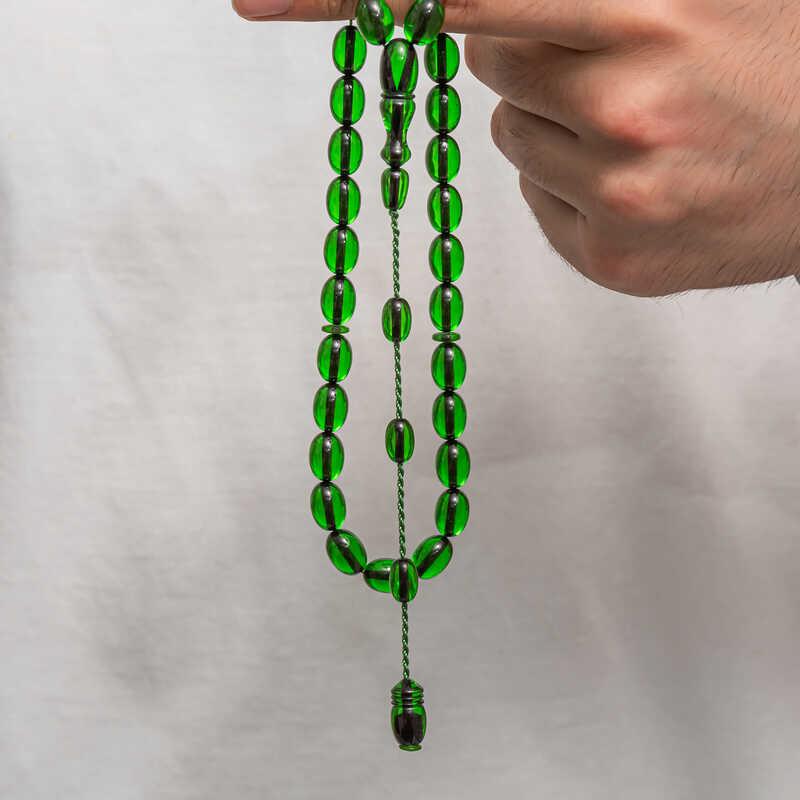 Kehribar, çam ağacı reçinesinin toprak altında uzun yıllar boyunca birikerek oluşan bir maddedir. Hemen hemen taş ile aynı sertliktedir fakat yoğunluğu düşüktür. Çam kokusu yayar. Oluşumu uzun zaman aldığından ve yapay olarak yapılamadığından değerli bir maddedir. Sıkma kehribar ise kehribar taşından farklı olarak onun özelliklerini taşıyan, görüntü itibariyle ona benzeyen fakat gerçek olmayan bir malzemedir. Ülkemizde ve dünyanın bir çok yerinde kehribar taşından çeşitli malzemeler üretilmiştir. Ülkemizde en yaygın olarak tesbih üretilmektedir. Kehribar tesbihler elde ısındıkça kehribar benzeri bir koku verir ve renk değiştirir. Bir çok rengi vardır. Hatta iki rengin birleşiminden oluşan kehribar tesbih modelleri de vardır.Ülkemizin güzide tesbih ustaları bu malzemeyi sıklıkla işlemek suretiyle çeşitli sanat eserleri meydana getirirler. Bu tesbihler de koleksiyonerler tarafından alınıp satılmaktadır. Sıkma kehribar tesbih modeli de günlük hayatta kullanılabilecek çok şık bir tesbih çeşididir. Özel günlerin vazgeçilmez hediyesi sıkma kehribar tesbihler erkekler için doğum günü, sevgililer günü ve babalar günü gibi özel zamanlarda hediye olarak tercih edilebilir.Sıkma kehribar tesbih modeli diğer kehribar tesbih modellerinde olduğu gibi tamamen el emeği ile imal edilmiştir.