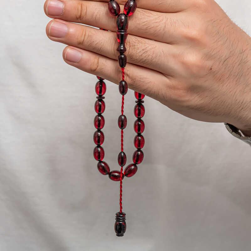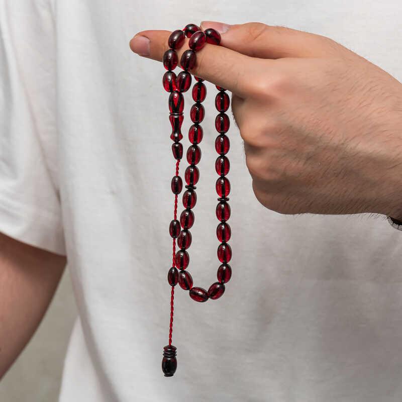 Kehribar, çam ağacı reçinesinin toprak altında uzun yıllar boyunca birikerek oluşan bir maddedir. Hemen hemen taş ile aynı sertliktedir fakat yoğunluğu düşüktür. Çam kokusu yayar. Oluşumu uzun zaman aldığından ve yapay olarak yapılamadığından değerli bir maddedir. Sıkma kehribar ise kehribar taşından farklı olarak onun özelliklerini taşıyan, görüntü itibariyle ona benzeyen fakat gerçek olmayan bir malzemedir. Ülkemizde ve dünyanın bir çok yerinde kehribar taşından çeşitli malzemeler üretilmiştir. Ülkemizde en yaygın olarak tesbih üretilmektedir. Kehribar tesbihler elde ısındıkça kehribar benzeri bir koku verir ve renk değiştirir. Bir çok rengi vardır. Hatta iki rengin birleşiminden oluşan kehribar tesbih modelleri de vardır.Ülkemizin güzide tesbih ustaları bu malzemeyi sıklıkla işlemek suretiyle çeşitli sanat eserleri meydana getirirler. Bu tesbihler de koleksiyonerler tarafından alınıp satılmaktadır. Sıkma kehribar tesbih modeli de günlük hayatta kullanılabilecek çok şık bir tesbih çeşididir. Özel günlerin vazgeçilmez hediyesi sıkma kehribar tesbihler erkekler için doğum günü, sevgililer günü ve babalar günü gibi özel zamanlarda hediye olarak tercih edilebilir.Sıkma kehribar tesbih modeli diğer kehribar tesbih modellerinde olduğu gibi tamamen el emeği ile imal edilmiştir.